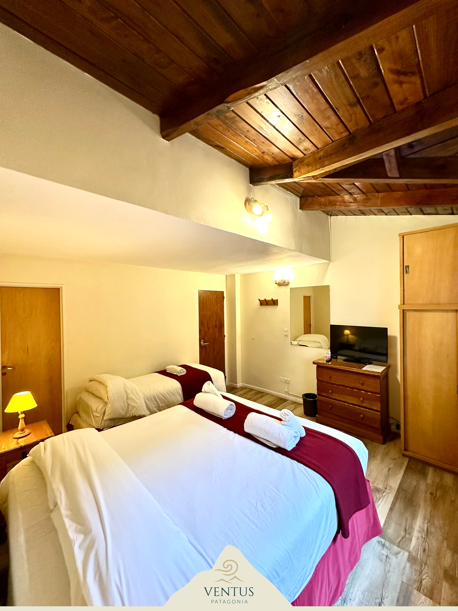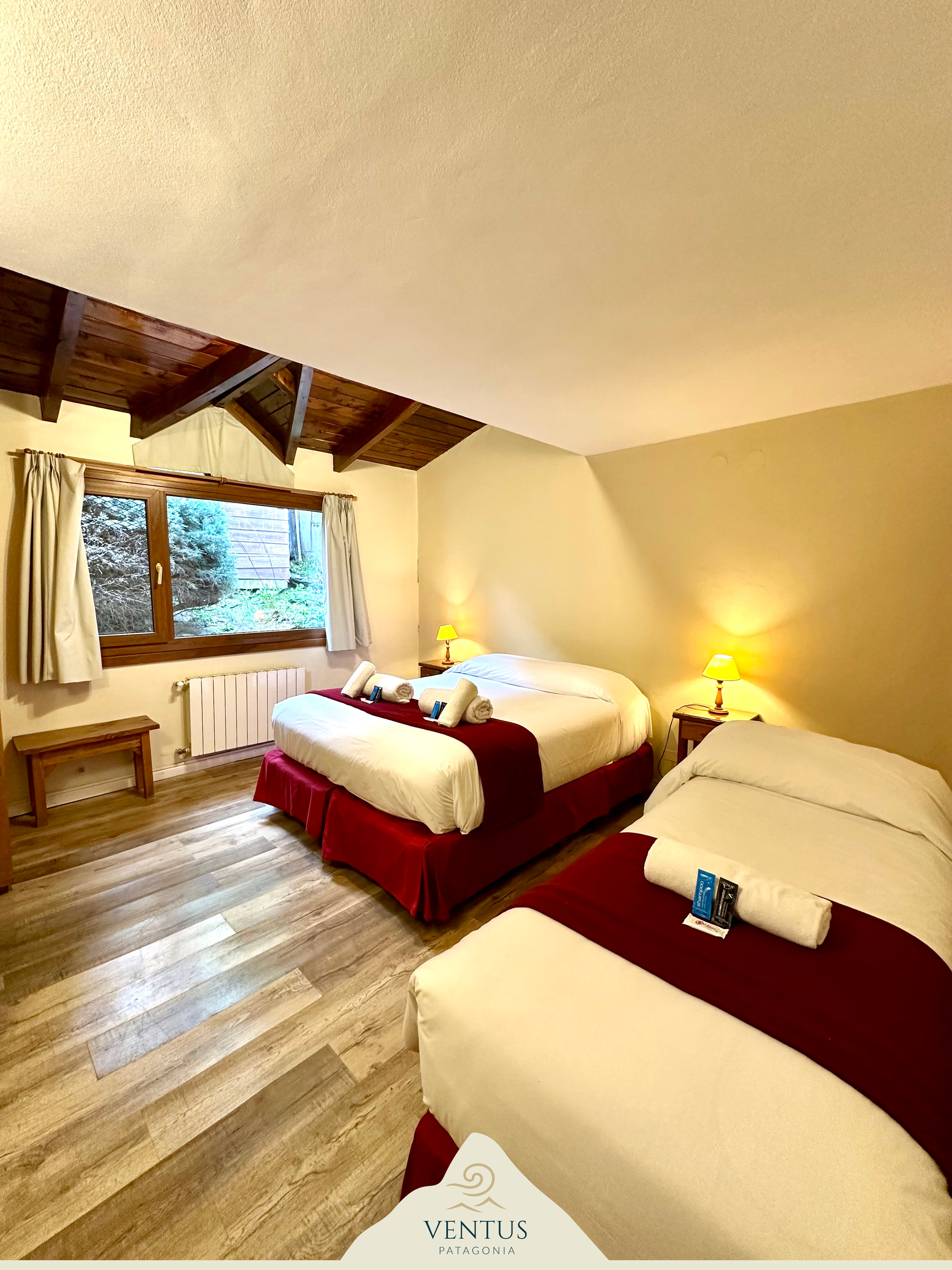 Ideal para familias o grupos pequeños, nuestra habitación triple ofrece un ambiente cómodo y funcional para una estadía placentera en Bariloche.