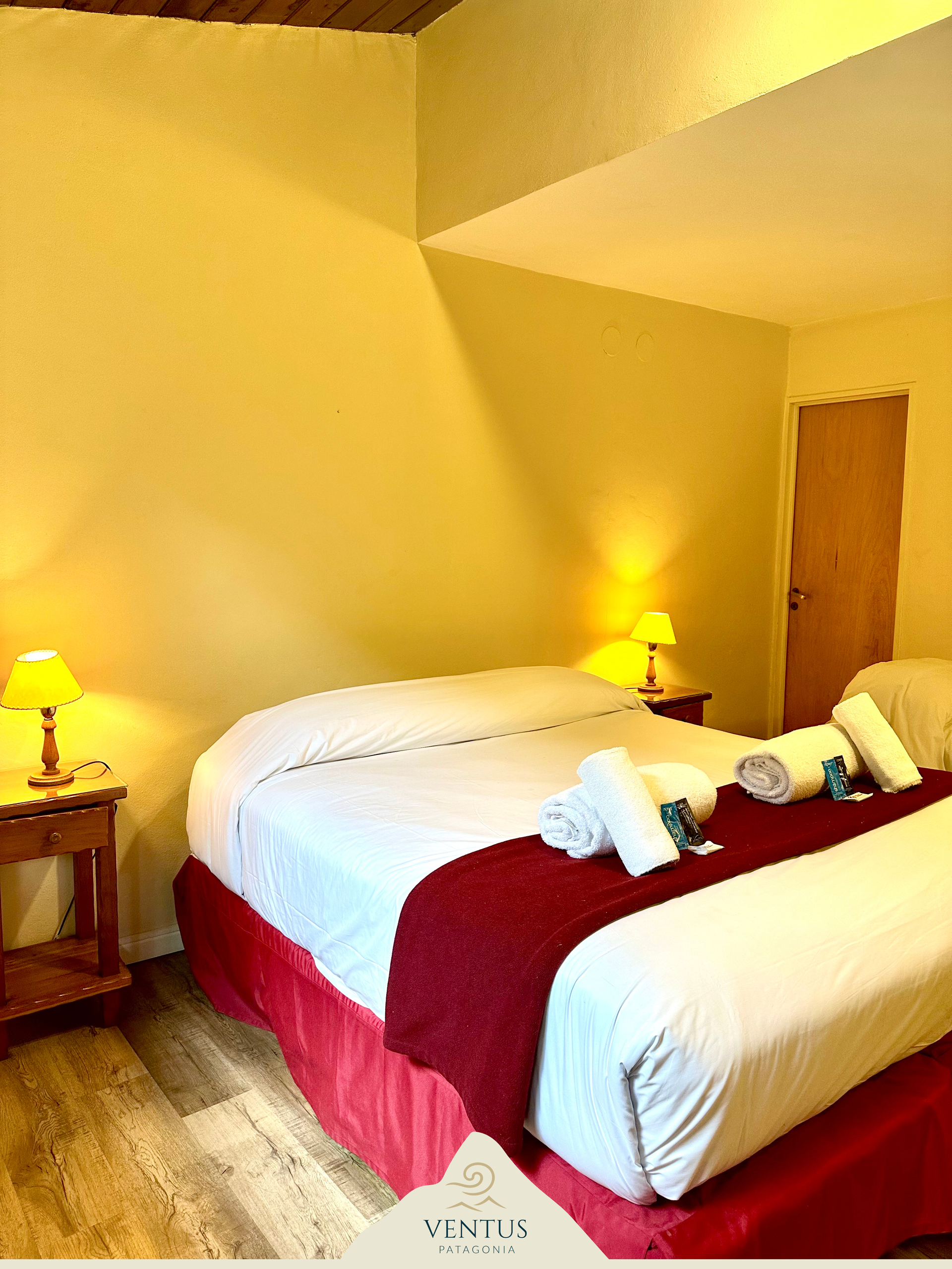 Equipada con calefacción, televisión, Wi-Fi, y servicio de limpieza diario, esta suite combina funcionalidad y calidez en un entorno acogedor, perfecto para disfrutar de la Patagonia con comodidad.